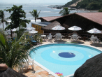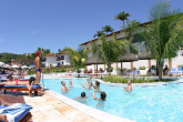 Ampia area piscina disposta su due piani con sdraio, ombrelloni e servizio bar, spiaggia prospiciente al resort, libera come in tutto il Brasile.