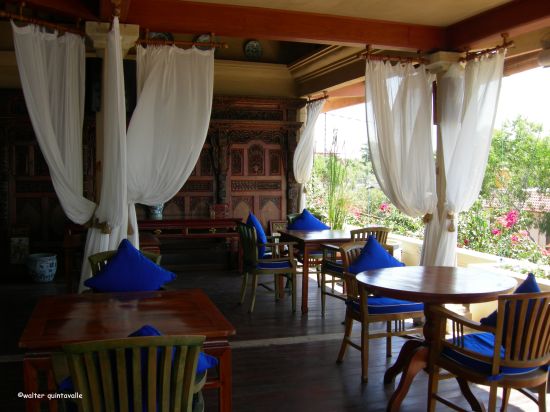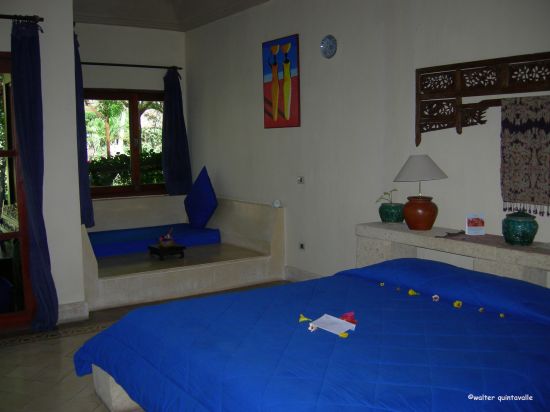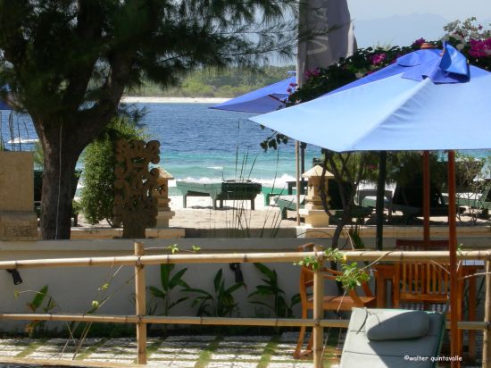Gili......è fuori dal tempo, arrivare li di sera al buio con una barca locale da Lombok, arenarsi sulla spiaggia e di qui proseguire con il calessino per l'albergo mi ha fatto vivere emozioni fortissime. Villa Almarik.....un sogno , una cortesia, il nostro boungalow mi ha trasportato in un sogno. Io non rimango affascinata dal lusso.....ma dalle piccole cose dai particolari e la camera e il bagno bisogna propio vederli. Il personale è squisito, il diving molto esperto, il cibo molto buono in puro stile indonesiano ma con scelta anche per l'occidentale. Il tempo è scandito dai campanellini dei calessini che portano i turisti in giro per l'atollo. Il mare subito presso la riva offre uno spettacolo di pesci e tartarughe a dir poco incredibile. E' stato veramente un bellissimo soggiorno proseguito poi a Lotus di Candidasa...a Bali