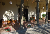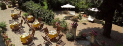 Seduti sotto la loggia Rinascimentale si gode la vista sul giardino e sulle colline del Chianti, con il profumo delle rose antiche, delle lavande e dei limoni. Nel cortile centrale ,la parte più antica della villa, le rose, le ortensie ed i gelsomini profumati ricoprono le pareti ed il vecchi pozzo.